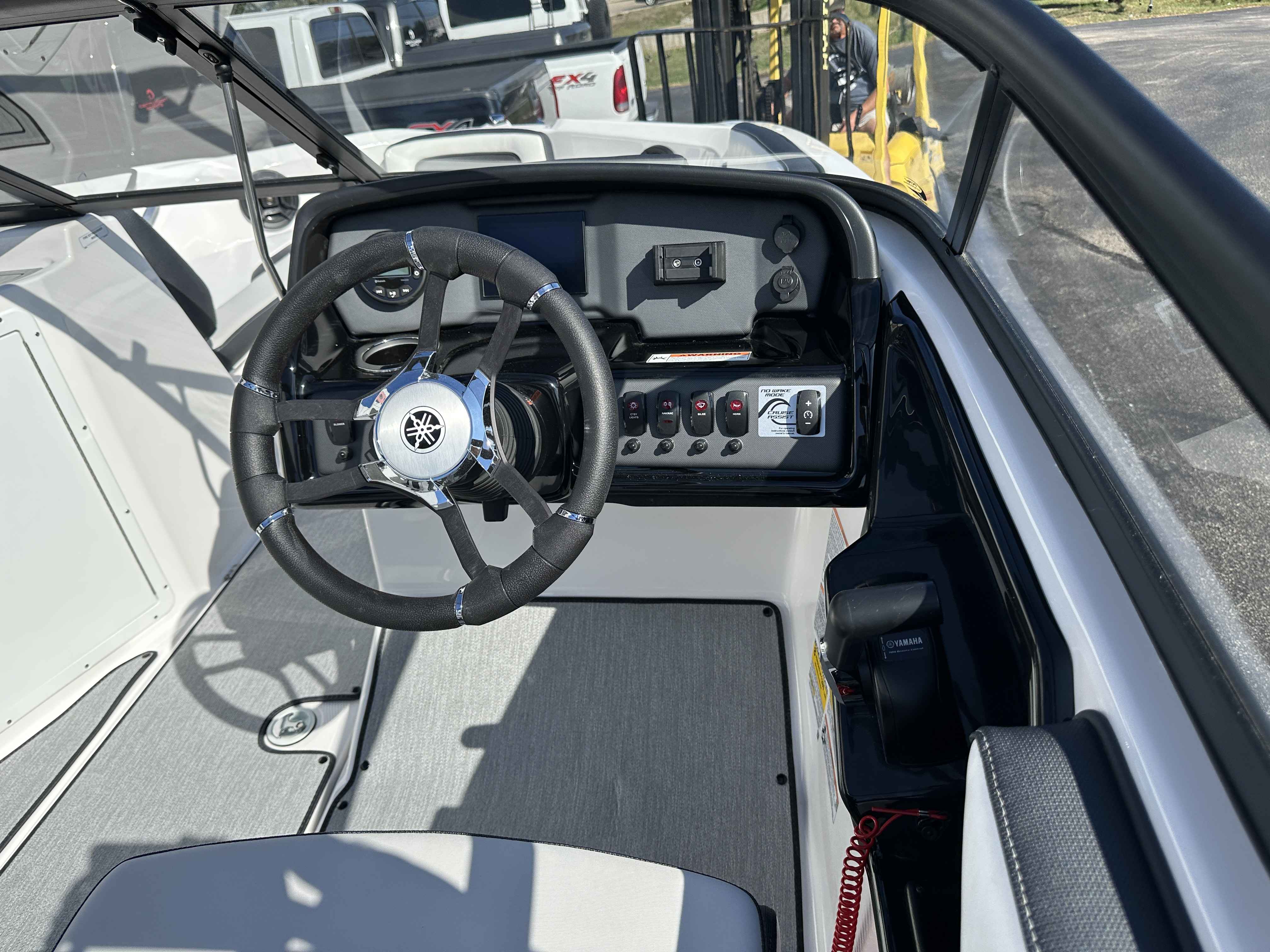 Helm Featuring Connext Touchscreen: Features a 5-inch multi-color Connext touchscreen that serves as the central hub for entertainment functions, GPS mapping, and essential boat system data while underway